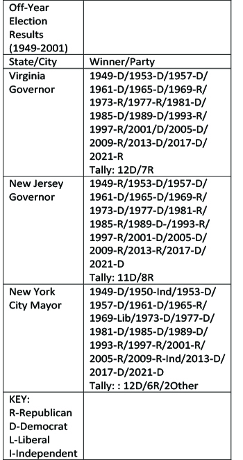 VA is the only state with a one-term limit on governors, so every 4th year is a mad scramble. This is a throwback to the segregationist South where a governor, once elected, could hold office for 20 years and get rich from graft. Popular governor Glenn Youngkin (R) won by ----- votes in 2021 but cannot run. Lt. Gov. Winsome ---(R), a Black woman, ex-Marine and daughter of Jamaican immigrants, is polling within the margin-of-error. She will win by 15,000.